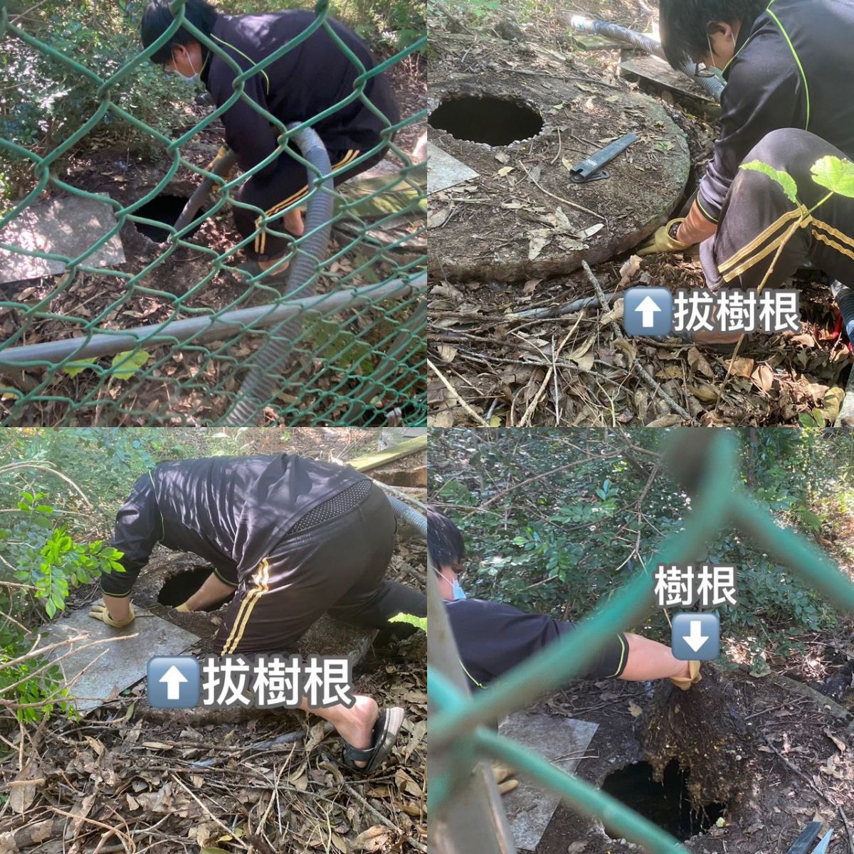 ⚠️因為化糞池週邊都是樹,樹根通常會往有養份的地方紮根,所以這個化糞池裡滿滿的都是樹根,這樣很容易讓化糞池的內部堵塞,所以多沅衛生在抽水肥的過程中,看到能處理的問題會盡量處理,但還是建議,化糞池週邊不要種樹啊,不然有100個多沅衛生也不夠你用????。