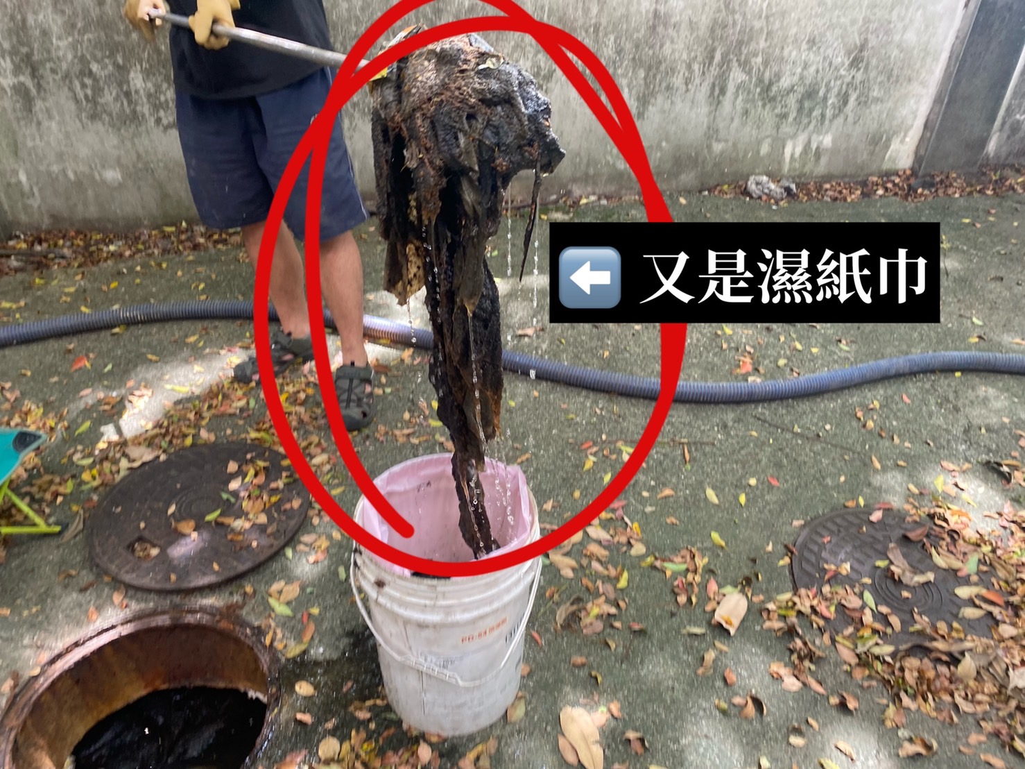 沒想到抽水肥竟然抽得不是水肥,抽到的是一大堆的濕紙巾。
