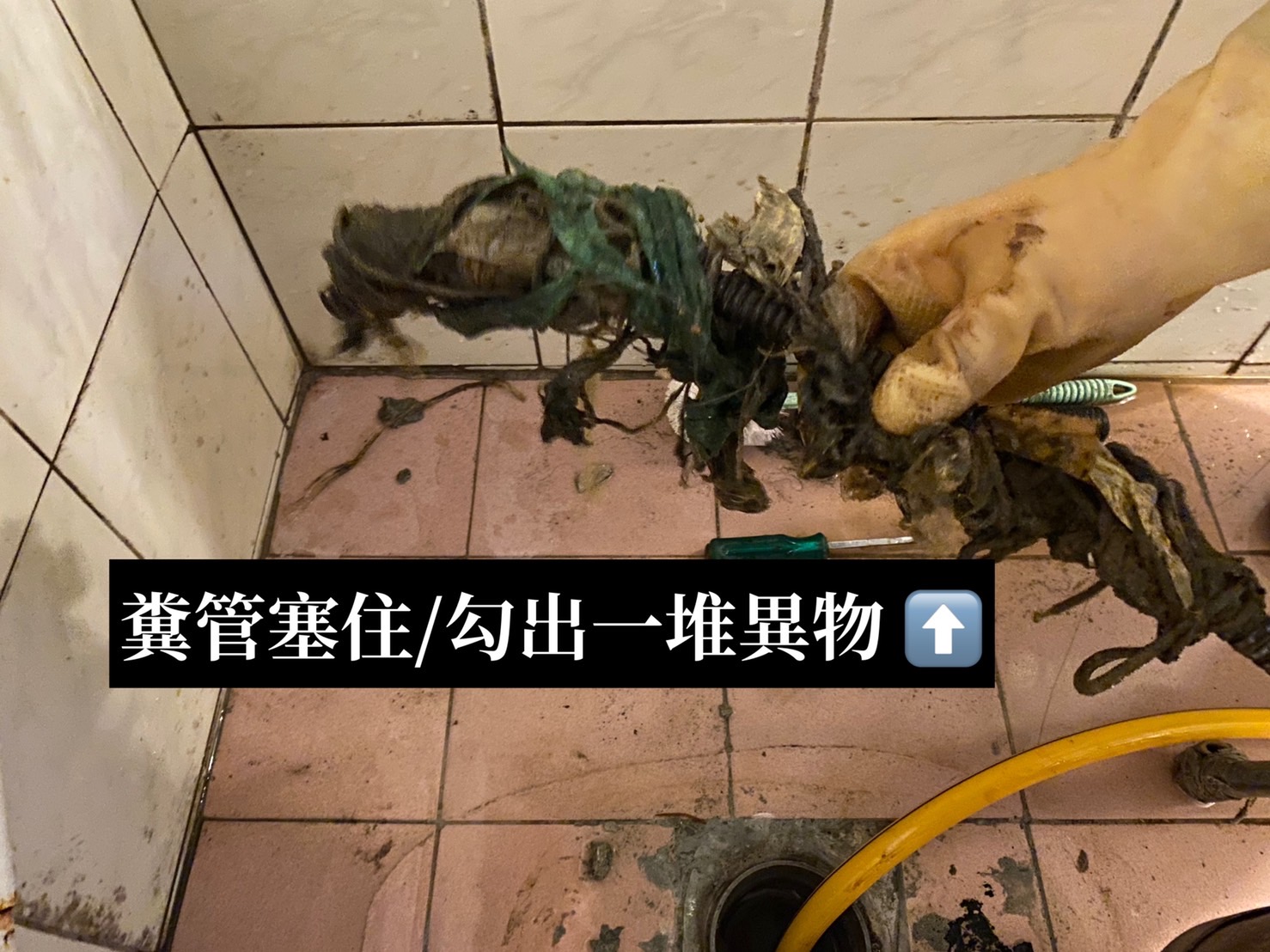 家中管路太長,加上又有丟衛生紙和濕紙巾的習慣,導致糞管塞住了喔,拆下馬桶,使用電動通管機進行疏通,疏通完成,馬桶復原喔!
