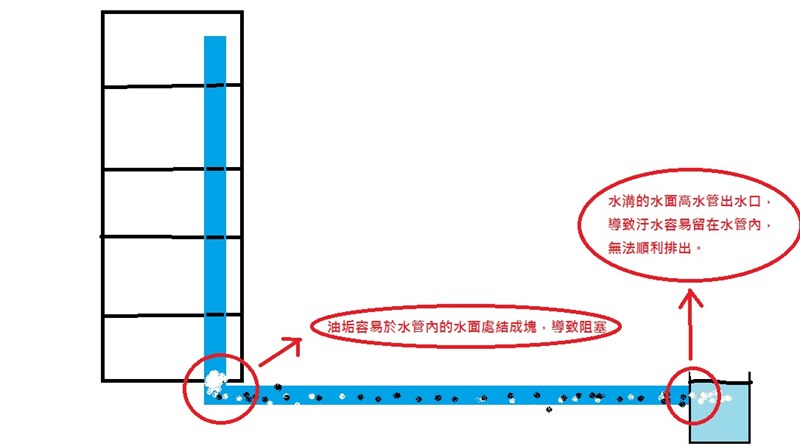 是這樣的~因為1樓可能是不同管路~所以只要一塞樓上的廚房用水都會往最低的出水孔跑!!